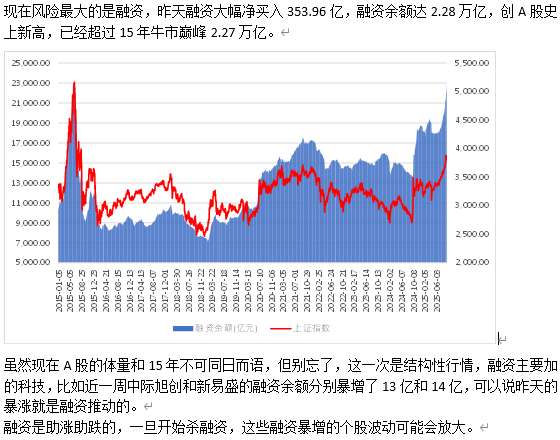 融资是助涨助跌的,一旦开始杀融资,这些融资暴增的个股波动就会放大。而引发今天科技股暴跌的导火索恰恰是融资,有报道称要抑制过度投机(目前没有证实),这些高融资的投资者自然就慌了。